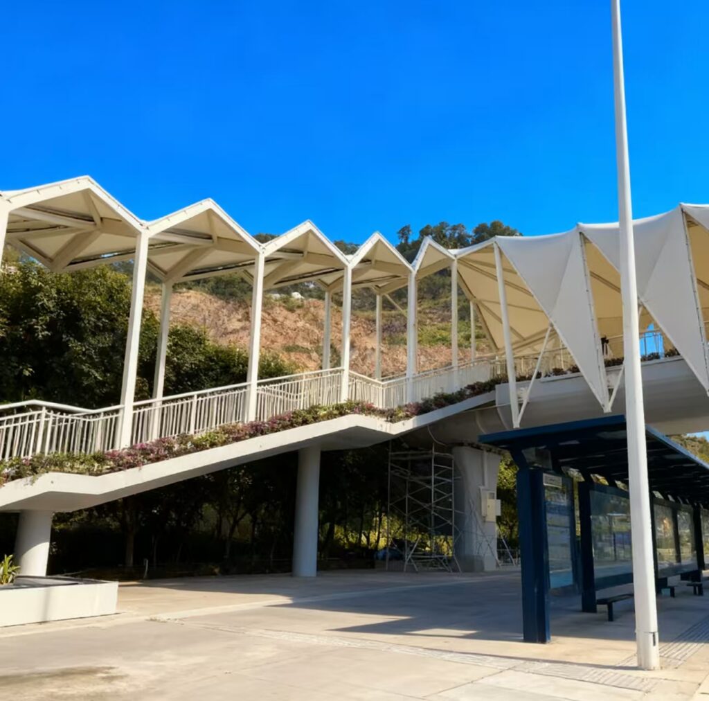 This project involves the renovation of the Xiajiao Mountain pedestrian bridge and the airport south pedestrian bridge. It includes the steel structure, membrane structure, railings, and foundation work. The membrane structure we will be implementing is a crucial element for travelers on their way to Shenzhen Airport. Largely enhancing both functionality and aesthetics.