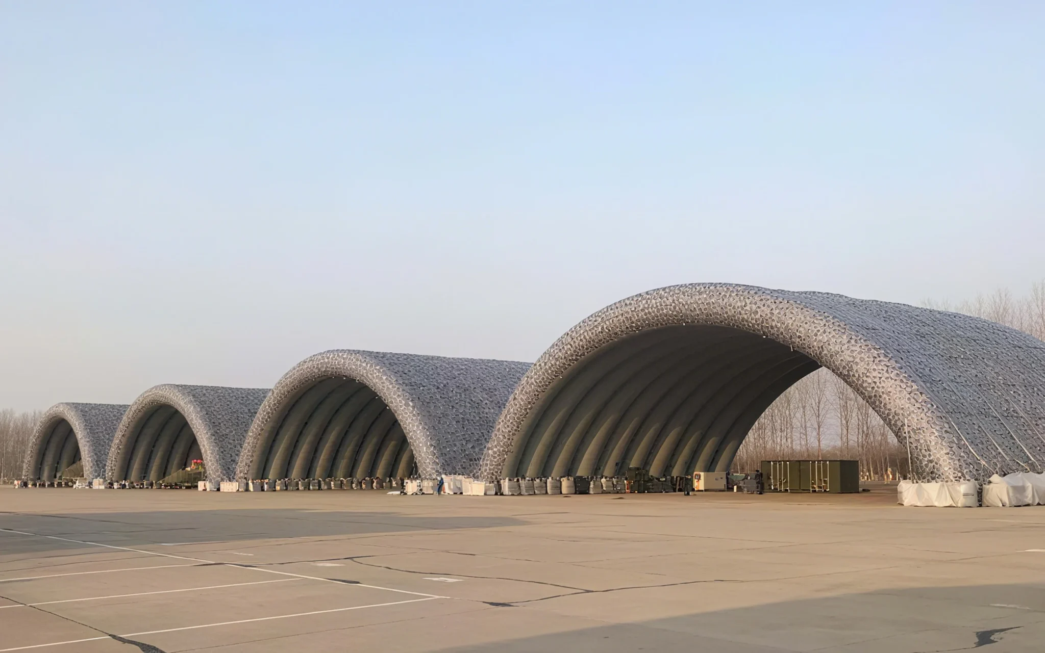 这座某群岛两栖装备充气机库战略性地坐落于一处重要的群岛之上,旨在容纳各种两栖车辆和装备,为维护、存储和作业提供安全且多功能的空间。该机库不仅提升了海军和空军部队的作战效率,也展现了我们致力于打造创新基础设施解决方案,以应对岛屿环境带来的独特挑战。